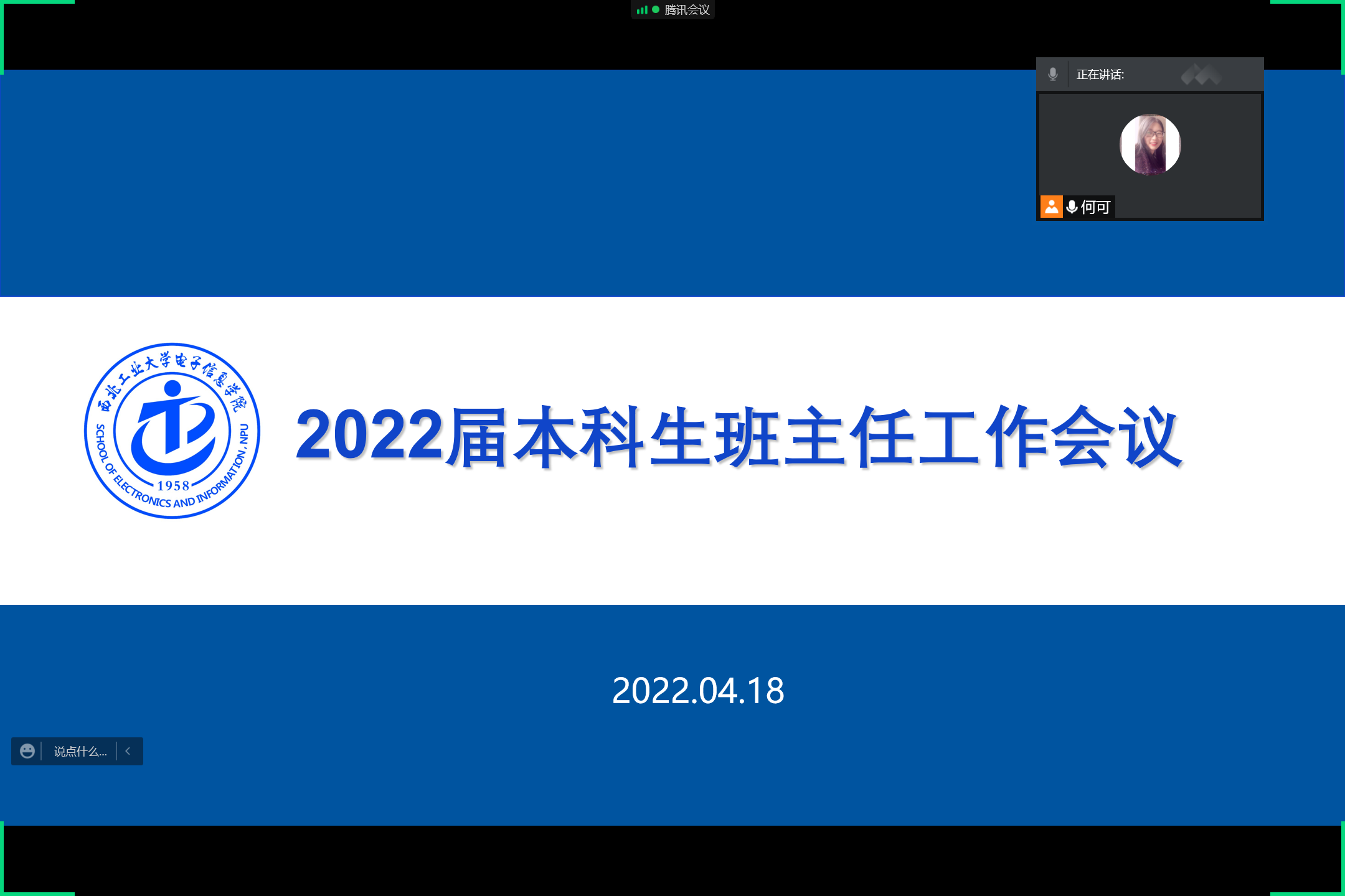 何可就《关于做好2022届本科毕业生、第二学士学位毕业生毕业相关工作的通知》内的相关问题进行解读,并针对2022届各班学生的重点学业问题进行了梳理,随后班主任就班级现存的问题进行了提问。