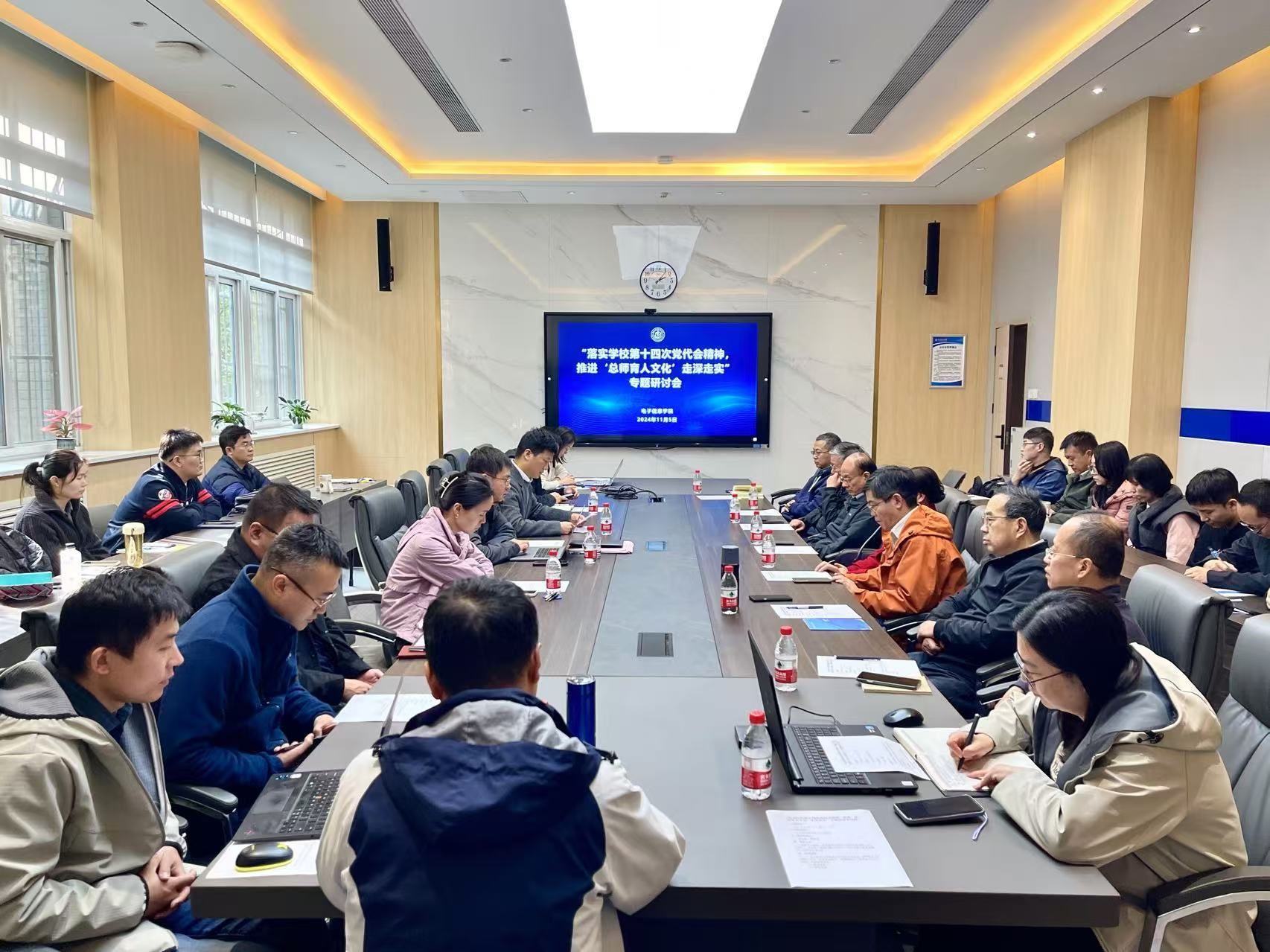 为贯彻落实学校第十四次党代会精神,持续强化“总师育人文化”引领人才培养,10月5日下午,hg8868皇冠官方登录平台在119会议室召开“总师育人文化”走深走实专题研讨会。党委书记侯俊、党委副书记高敏、副院长高永胜、各专业负责人、各系主任、各课程(群)负责人以及近三年新入职青年教师参加了此次会议,会议由高永胜主持。