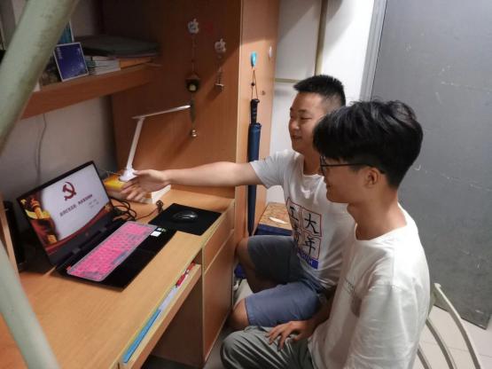 刘龙同学继续向宿舍中没有回家的同学宣传我们的社会实践成果。