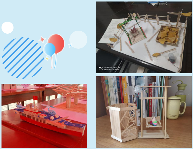 “我们组的作品是一架钢琴,通过对雪糕棒进行上色处理,打造出了一种木制的古典美。作品本身是一件精巧的工艺品,我们可以把它摆放在我们的桌子上,提升我们的审美和幸福感。”