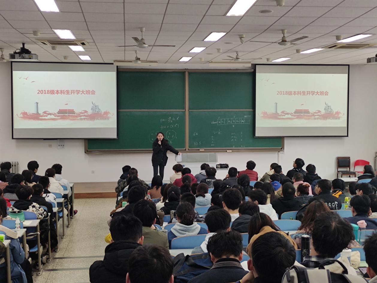 3月9日,hg8868皇冠官方登录平台本科2018级在教学西楼D201召开了开学大班会,主要针对2018级学生的考研、保研以及就业问题进行详细讲解。2018级全体学生参加会议,F1岗辅导员樊晔主持并讲话。