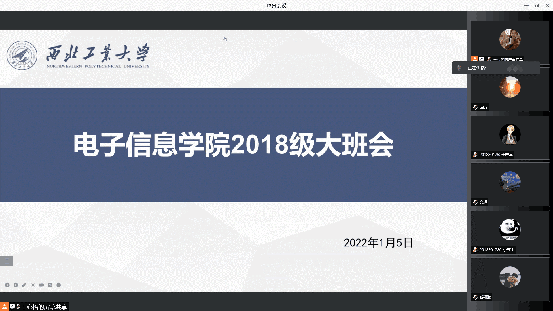 会议一共分为五个部分:新学期课程安排、毕设事宜解答、安全教育、思政小课堂活动安排、视频观看。