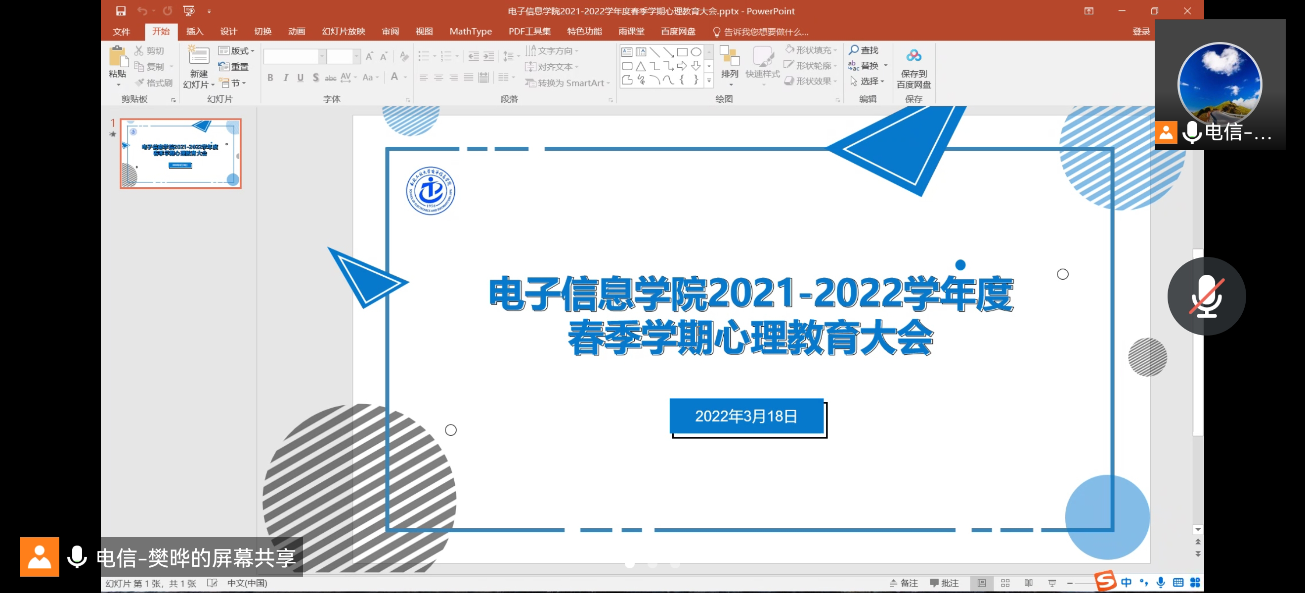 3月18日晚6:30,知心阁负责人樊晔主持线上会议。本次会议从机构简介、工作开展情况、学生帮扶情况等三个方面向大家介绍了hg8868皇冠官方登录平台的心理工作及未来工作思路,同时鼓励同学们积极面对心理波动问题,发现问题可以寻求班主任、辅导员以及知心阁的帮助,及时解决。同时,会议介绍了本学期第一次周末活动日,并向各位同学发出了真挚的活动邀请。