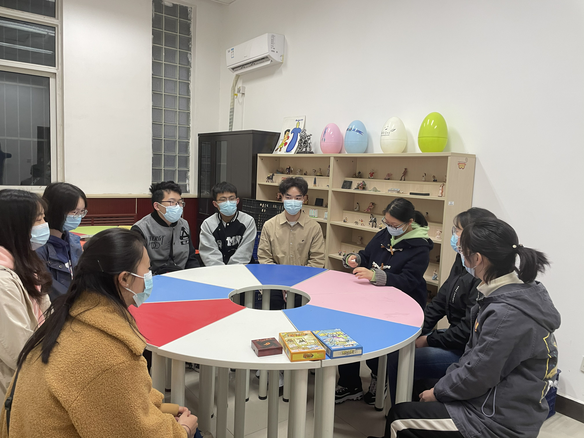 3月19日,本学期第一次周末活动日如约而至。2021级的同学们在hg8868皇冠官方登录平台楼167心理健康教育活动室开展了一次轻松解压又“烧脑”的桌游——狼人杀。在游戏过程中,同学们互相交流、互相沟通、彼此认识,从游戏中体会交际、分辨真伪,在忙碌的学习工作和生活中得到短暂的放松。