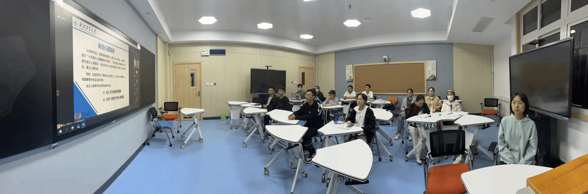 在整场讲座中,心理中心的老师引经据典、妙语连珠,通过列举一些生动鲜活的事例,在轻松愉快的氛围下,教给同学们心理学的知识,帮助同学们认识压力,增强心理调适能力,通过有效、科学的方法缓解压力,成为身心健康的人。随后,对前期开展的心理测评结果进行了阐释说明,同学们对照自己的测评结果认真聆听,对自己的心理健康情况有了进一步的了解。