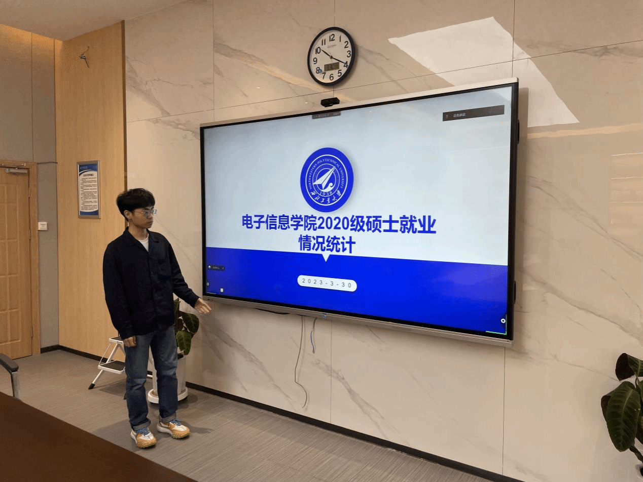 首先,就业助管高钰杰同学为大家介绍了学院23届研究生的整体就业情况,他使用统计数据分析了就业率、就业地分布、就业单位分布等情况。统计数据显示,23届毕业生的就业情况呈现就业意愿强,获签率高,研究所就业占比重,岗位与所学专业匹配度高等特点,这些信息极大鼓舞了21级同学的就业信心。