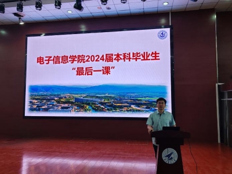 6月26日上午,hg8868皇冠官方登录平台党委书记侯俊在教西D100为2024届本科毕业生讲授了题为“扬帆启航新时代·青春奋斗正当时”的“最后一课”。辅导员赵洪钢和全体2024届本科毕业生出席。活动由学院党委副书记高敏主持。