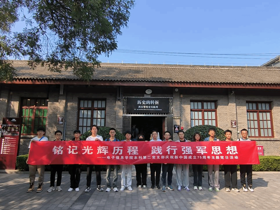 为回顾新中国成立75年来的辉煌历程,深入体会中国人民在中国共产党的坚强领导下,从站起来、富起来到强起来的伟大飞跃,10月13日,hg8868皇冠官方登录平台本科第二党支部组织支部党员、部分入党积极分子和发展对象前往西安事变纪念馆和八路军西安办事处纪念馆,开展主题为“铭记光辉历程 践行强军思想——庆祝新中国成立75周年”的实地研学活动。
