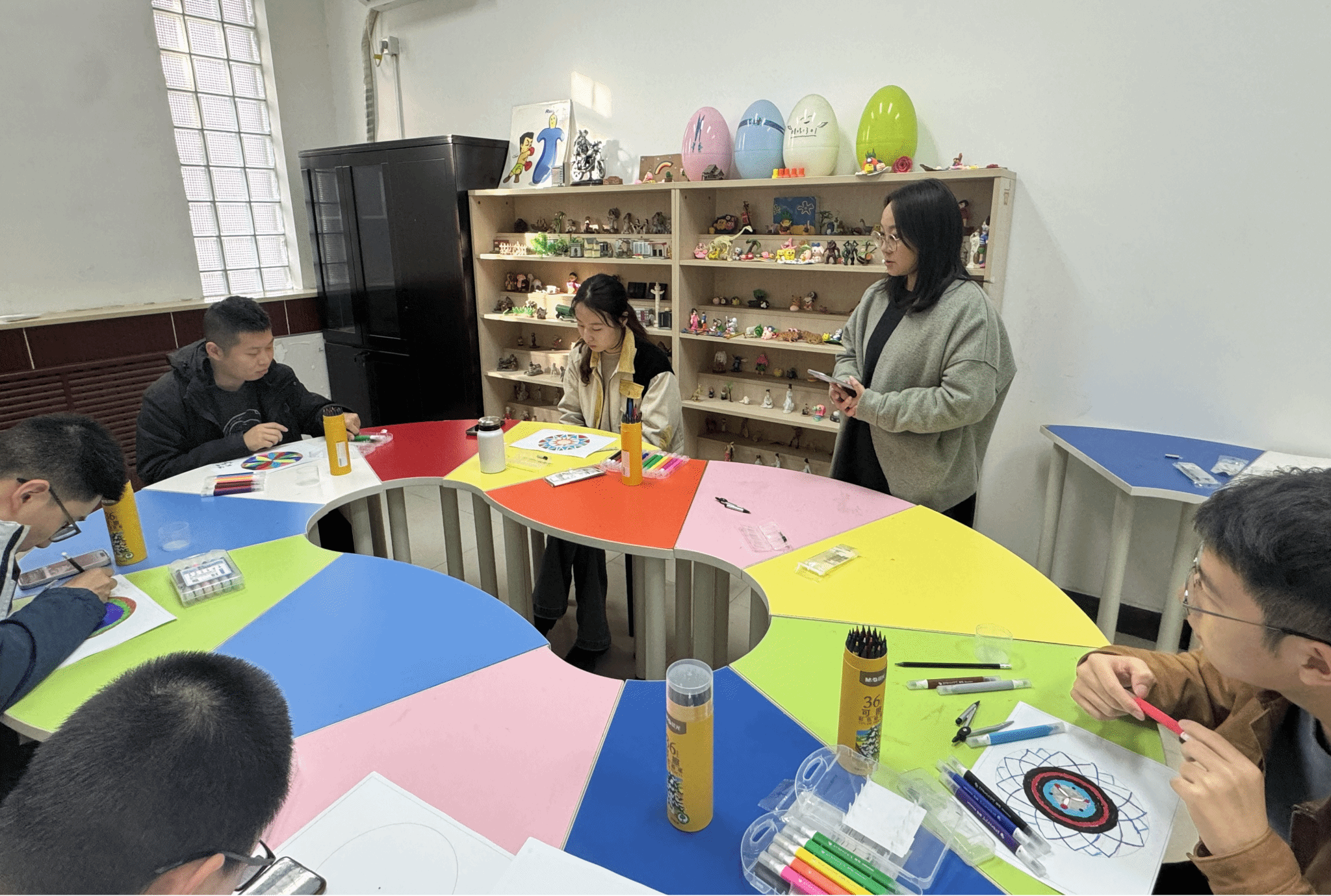 11月21日下午15:00,在这个初冬时节,hg8868皇冠官方登录平台“知心阁”心理辅导站开展了一场别开生面的艺术疗愈团体心理辅导活动。本次活动由兼职心理咨询师王晶老师带领,旨在通过曼陀罗绘画的方式,减轻考研或期末阶段同学们的学习备考压力,释放紧张焦虑情绪,探索内心世界。