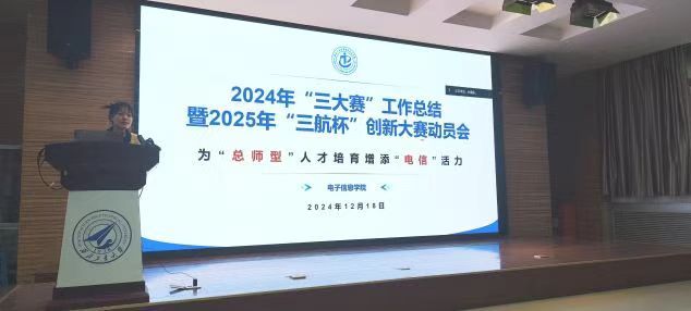 王嘉悦介绍了“三大赛”的基本情况、2024年主要工作与成绩,深入分析了存在问题和不足,提出了下一步的工作举措,讲解了学校、学院对“三大赛”获奖的激励办法,鼓励大家积极参加2025年“三航杯”创新大赛,提早备赛。