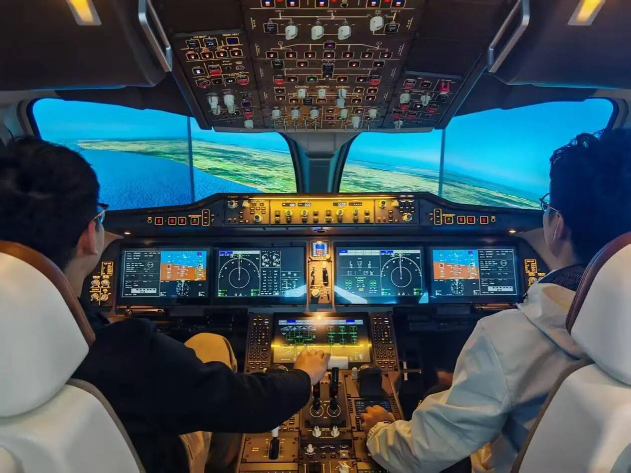 在在智慧飞行展馆,从基础的控制原理到复杂的系统集成,从“想飞”到“享飞”、从“会飞”到“慧飞”的技术跨越,成员们逐步认识到“为中国飞机装上智慧大脑”的深刻内涵。每一套系统、每一组数据背后,是航空工业从追赶到并跑、从自主到创新的艰辛历程。在C919飞行模拟器前,同学们亲手操控飞机,近距离感受到航空系统的高精度与高可靠性,也对“智慧飞行”有了更具象的认知。