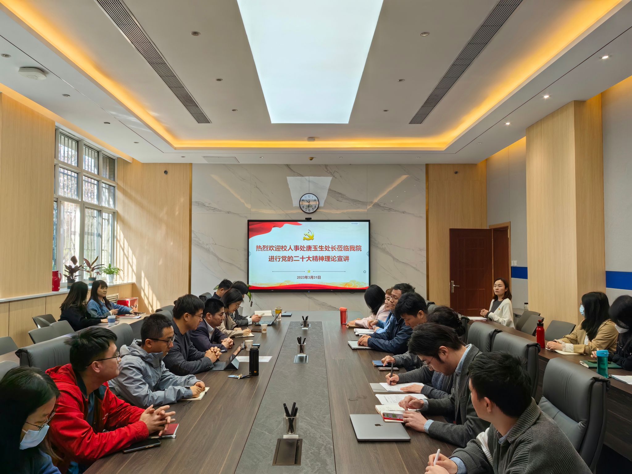 最后,侯俊做总结发言,感谢唐处长的精彩讲授,为学院的人事人才工作提供了思路、指明了方向。他指出,今年是全面学习贯彻落实党的二十大精神的开局之年,是实施国家“十四五”规划的关键之年,也是学校高层次人才引育的攻坚时刻。希望全院教师能够准确把握学校人才引育政策,抓住机遇,不断提升学院人事人才工作水平,进一步压实引育任务,激励人才引进的主动性和积极性,责任到人、责任到岗,共同谱写学院人事人才工作高质量发展新篇章。