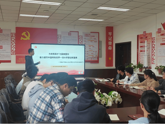 本科第三党支部注重党员基础理论学习与探讨,通过开展“党的二十大精神重点研读”“热点问题研讨式”等系列学习,以理论与实践相结合的方式学习宣传、贯彻落实党的二十大精神、习近平新时代中国特色社会主义思想。党代会开幕之际,支部副书记李佳庆以党课的形式带领支部党员深入学习贯彻党的二十届三中全会精神,感受新时代全面深化改革的重大成就以及进一步全面深化改革的重大原则和各项举措,坚定道路自信、理论自信、制度自信、文化自信,引领支部党员为推进中国式现代化,实现中华民族伟大复兴贡献自己的力量。