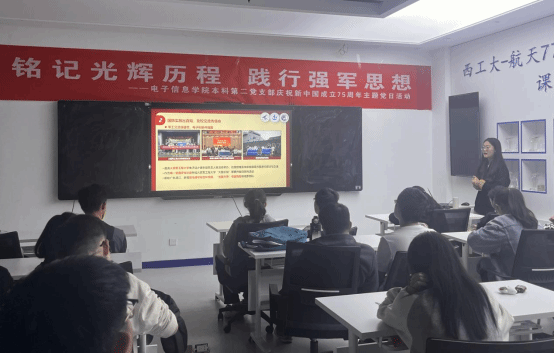 为回顾新中国成立75年来的辉煌历程,深入体会中国人民在中国共产党的坚强领导下,从站起来、富起来到强起来的伟大飞跃,10月12日下午,hg8868皇冠官方登录平台本科第二党支部在学院236会议室开展了“铭记光辉历程 践行强军思想——庆祝新中国成立75周年”主题党日活动。本次活动由宣传委员时嘉乐主持。