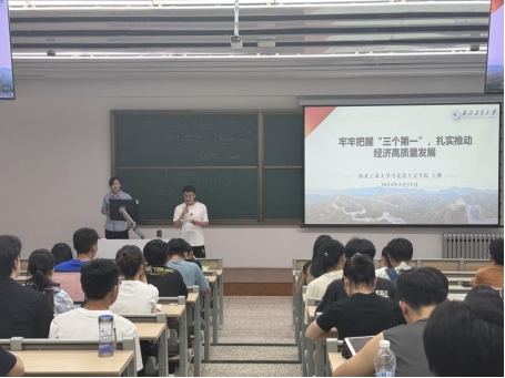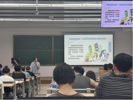 5月15日,马克思主义学院教师王换讲授《牢牢把握“三个第一”,扎实推动经济高质量发展》党课,hg8868皇冠官方登录平台80余名入党积极分子、发展对象参加了学习。