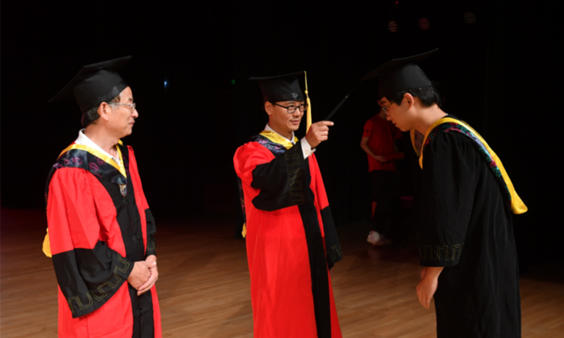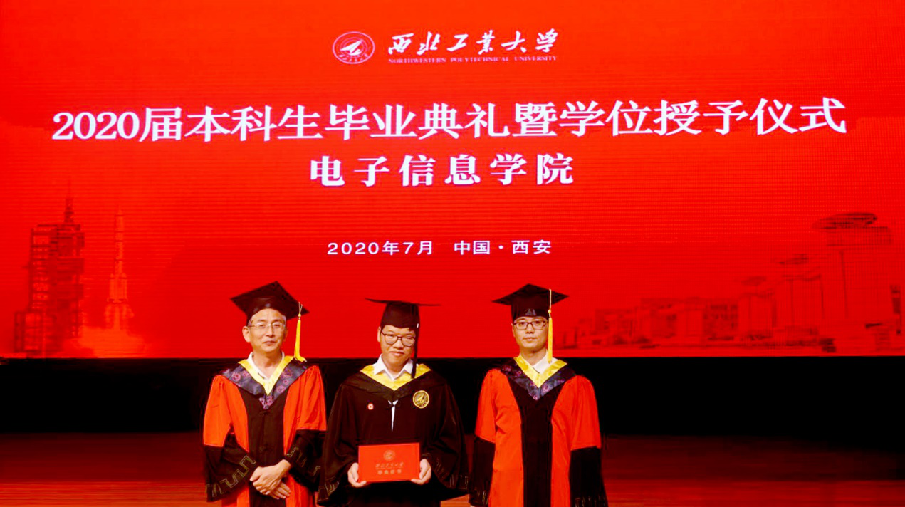 风雨萃英路,薪火传后人。中华灿烂,工大无疆!hg8868皇冠官方登录平台2020届全体本科毕业生合唱《我校校歌》,歌声悠扬,字字铿锵。学院学术委员会的四位老师王伶、李建瀛、冯晓毅、周巍为同学们一个个拨穗、颁发毕业证、合影留念。