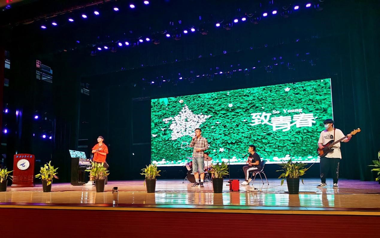 走廊的光线,剪影的校园,盛夏的蟋蟀声即将是从前。开场音乐弹唱《七月的晴天》带领毕业生回忆过往的校园点滴与自己的成长。