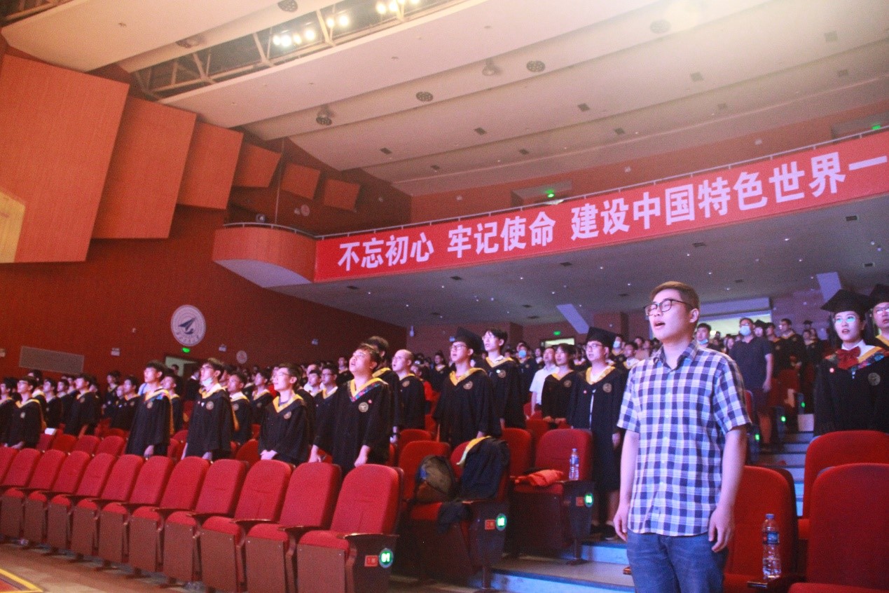 风雨萃英路,薪火传后人。中华灿烂,工大无疆!hg8868皇冠官方登录平台2020届全体本科毕业生合唱《我校校歌》,歌声悠扬,字字铿锵。学院四位老师王伶、李建瀛、冯晓毅、周巍为同学们一个个拨穗、颁发毕业证、合影留念。