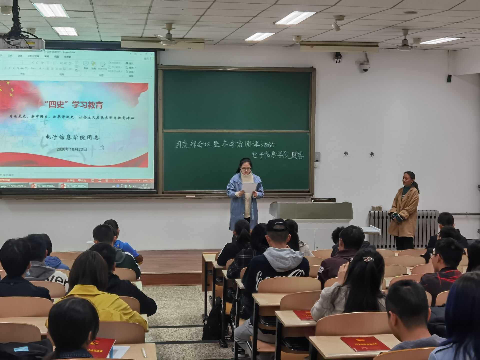 (团支书们为同学们讲解“四史”)
