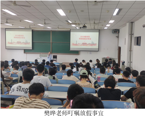6月10日,hg8868皇冠官方登录平台本科2018级在教学西楼D202召开了本科考研经验分享暨安全教育的主题班会,全体学生参加了会议,F1岗辅导员樊晔主持会议并讲话。
