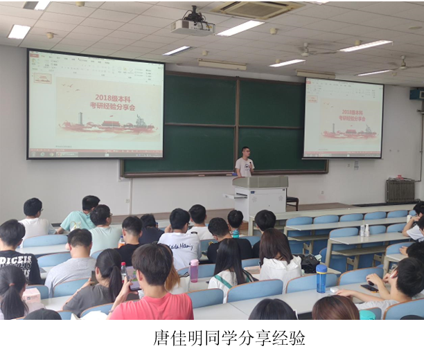 为了给准备考研的同学一些帮助,这次班会特地请来了何雯姿同学和唐佳明同学给大家分享考研经验。这两位同学考研成绩优异,并且对考研经验进行了汇总整理。在会议上两位同学分享了自己对于数学、英语、政治以及专业课的复习方法,包括自己的复习的时间线、参考资料以及刷题方法等等。分享的最后还强调了备战考研过程中好的学习氛围和保持良好心理状态的重要性。