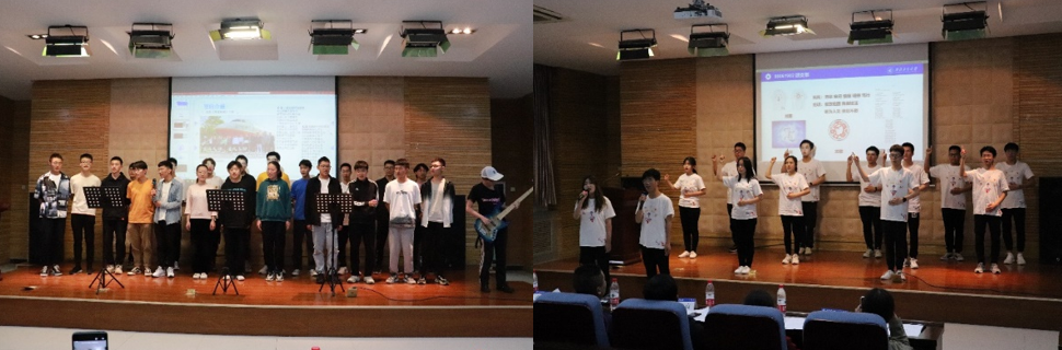 入围此次决赛的共有九个班级,各班按抽签决定的顺序依次登台进行班徽、班旗等的介绍、班歌的演唱以及班级才艺展示。同学们精神焕发,斗志昂扬,班歌的合唱整齐划一、铿锵有力,对词的改编也独具匠心,展示了各班独特的班风班韵。