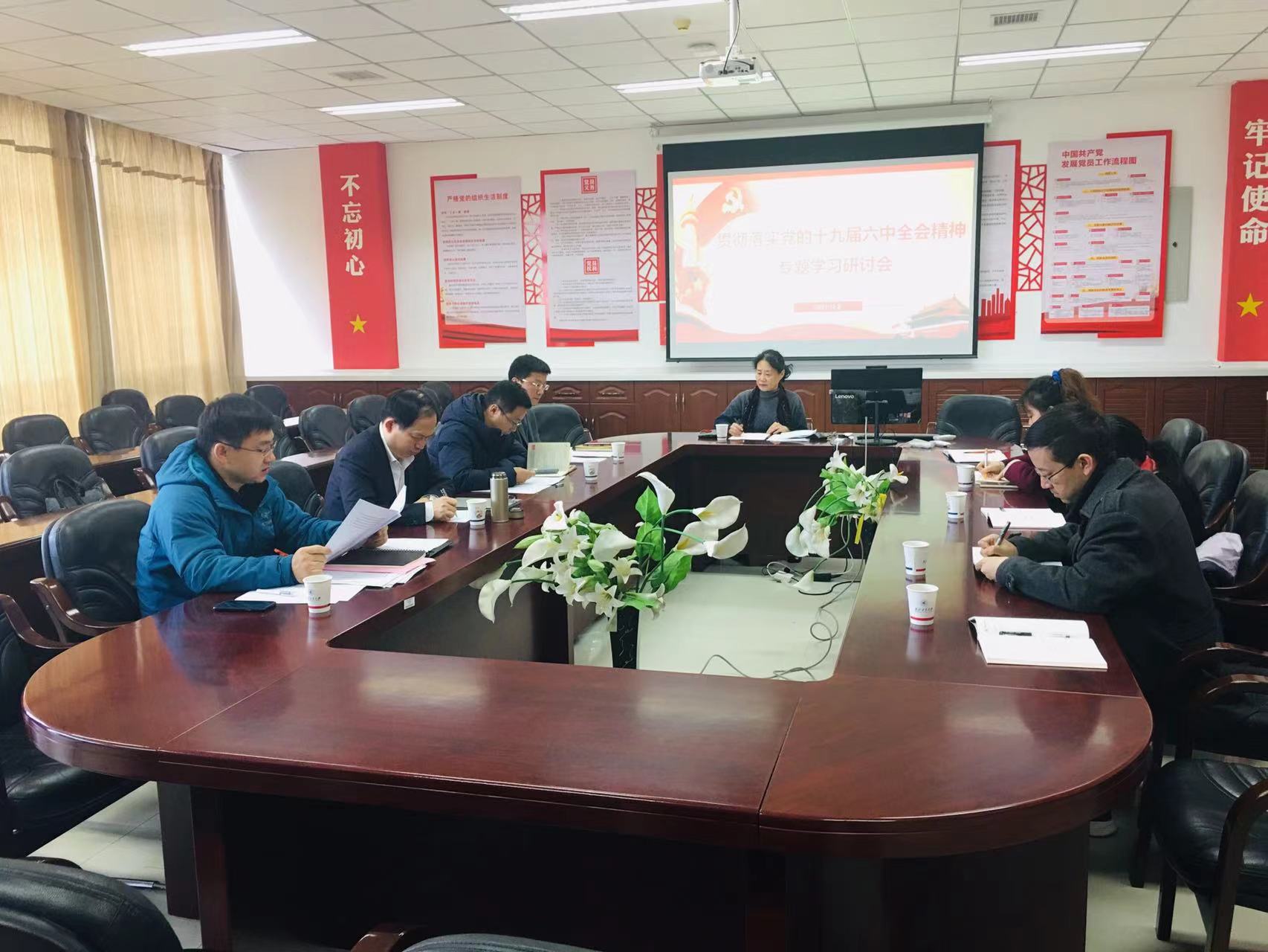 12月3日上午,hg8868皇冠官方登录平台党委理论学习中心组贯彻落实党的十九届六中全会精神第二次专题学习研讨会在学院432会议室召开,学院党委书记侯俊主持会议。副校长杨益新应邀参加本次研讨会。