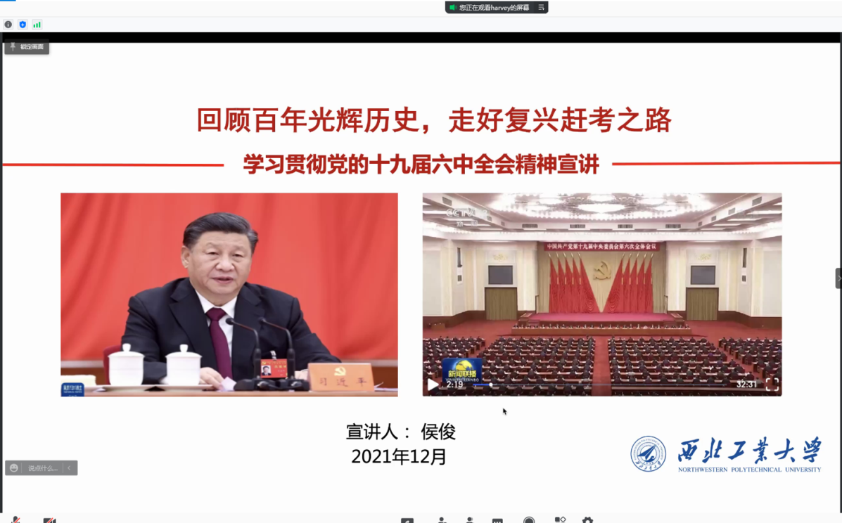12月28日下午,hg8868皇冠官方登录平台信息工程系党支部在线开展了“贯彻落实党的十九届六中全会精神,做好疫情防控工作”专题学习活动,学院党委书记侯俊同志为支部全体党员讲授了“回顾百年光辉历史,走好复兴赶考之路”的专题党课,宣讲党的十九届六中全会精神。会议由支部书记戴玉超同志主持。侯俊从一个初心使命,两个确立,三个“需要”,三个《决议》等方面,深入阐释了《中共中央关于党的百年奋斗重大成就和历史经验的决议》的主要精神,回顾了中国共产党的百年奋斗和伟大成就,学习了中国共产党的百年奋斗历史经验和精神财富,总结了中国共产党的百年奋斗历史意义和复兴新程。号召支部党员以史为鉴、开创未来,埋头苦干、勇毅前行,立足自身岗位为实现第二个百年奋斗目标、实现中华民族伟大复兴的中国梦而不懈奋斗。