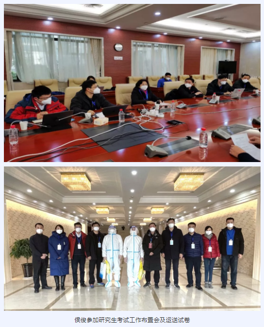 1225日到26日举行的全国研究生入学考试中,侯俊被抽调作为学校送考组组长,根据学校要求,安排部署送考工作,保证了在隔离点的学生“应考尽考”,确保了隔离点的考务工作顺利进行。