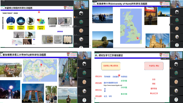 徐瑞以时间轴为顺序,分别讲述了在我校攻读博士期间以及在英国肯特大学和新加坡南洋理工大学做海外博士后期间的科研、生活、学习及成长经历,并结合自己的求学、求职的相关经验和心路历程,向大家分享了自己在职业发展等方面的经验,给了同学们很多科研和职业规划上的建议,与会同学们受益良多。