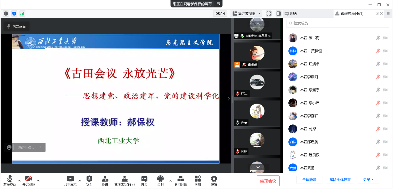 为深入学习贯彻习近平总书记在党史学习教育动员大会上重要讲话精神,根据中共中央办公厅《关于推动党史学习教育常态化长效化的意见》文件精神,3月25日下午,hg8868皇冠官方登录平台邀请陕西省政党治理与意识形态安全中心主任、学校马克思主义学院教授郝保权老师做题为“古田会议永放光芒”的党史学习教育专题线上培训活动。学院党委书记、教师党支部、学生党支部、班主任、辅导员及办公室人员参加了此次培训活动,活动由学院党委副书记彭亮主持。