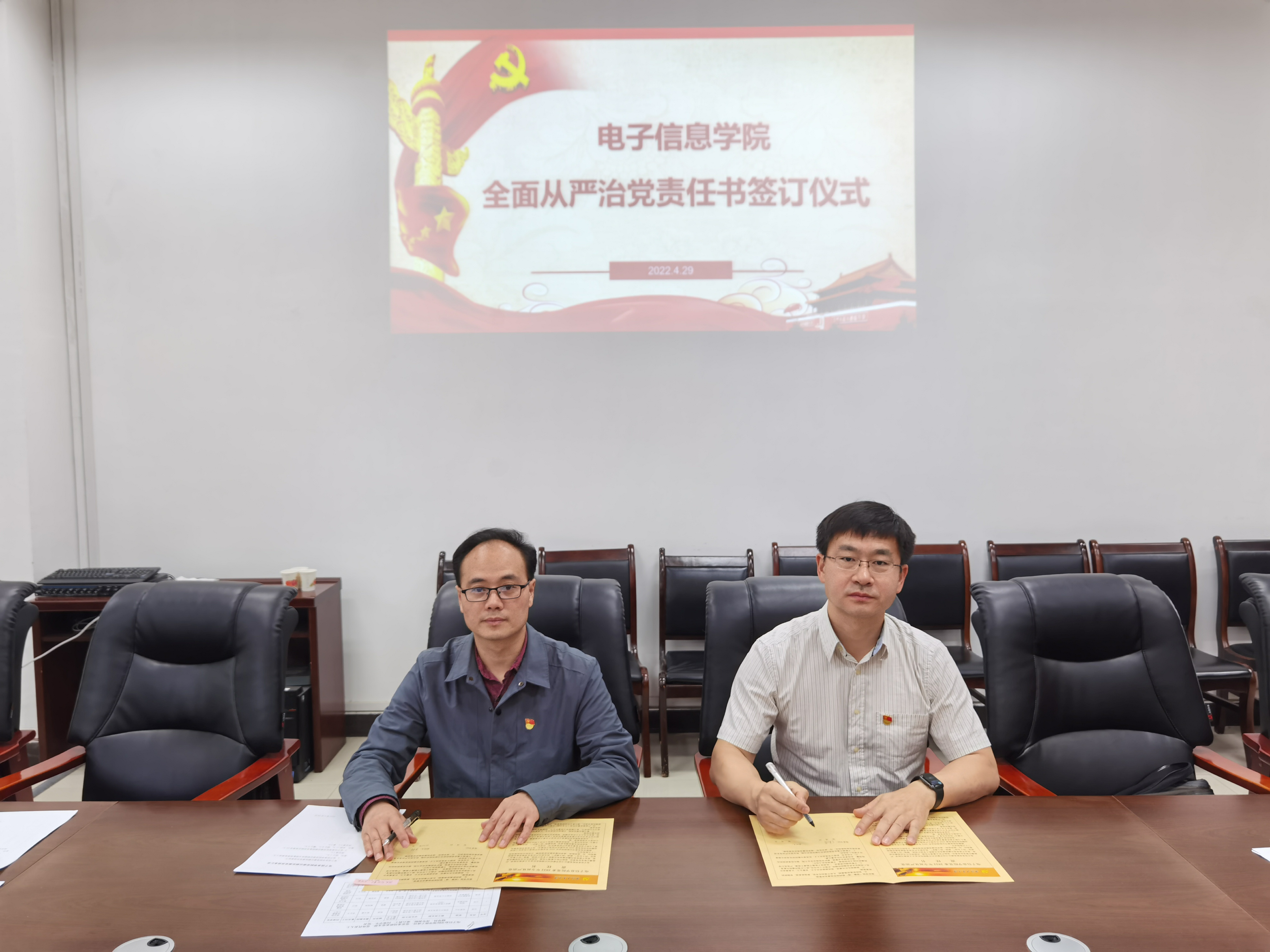 4月29日下午,hg8868皇冠官方登录平台在119会议室举行《2022年全面从严治党责任书》签订仪式,学院党委书记侯俊同志现场与全体新一届党委委员逐一签署了全面从严治党责任书。