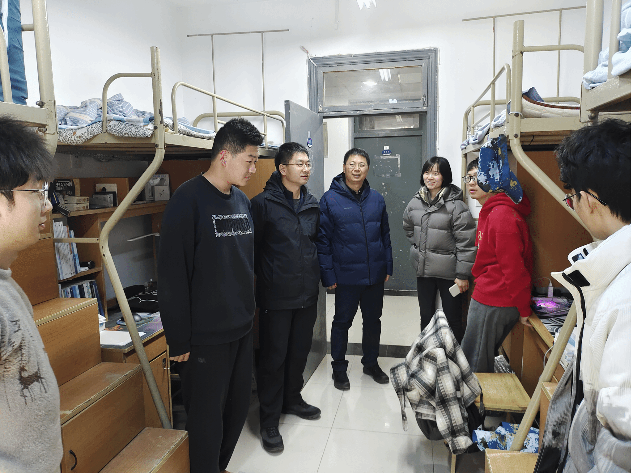 为切实做好新学期开学安全稳定防范工作支撑保障学校“127”目标实现与学院高质量发展,226日,学院党委书记侯俊院长张洵颖带队,副书记高敏、副院长陶明亮,安全员高建立、本科教学管理人员以及辅导员等深入学生宿舍、实验室和学院办公楼开展了教学秩序、安全稳定检查。