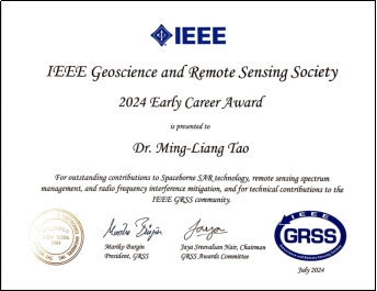 近日,第44届IEEE国际地球科学与遥感大会(IGARSS 2024)在希腊雅典成功举办,来自全球3000余名专家学者参加了该顶级旗舰国际会议。会上,hg8868皇冠官方登录平台陶明亮教授凭借其在国际遥感频率管理与干扰抑制方面的贡献,荣获IEEE地球科学与遥感学会2024年度青年成就奖(IEEE GRSS Early Career Award),这是我校教师首次获得该国际奖项。