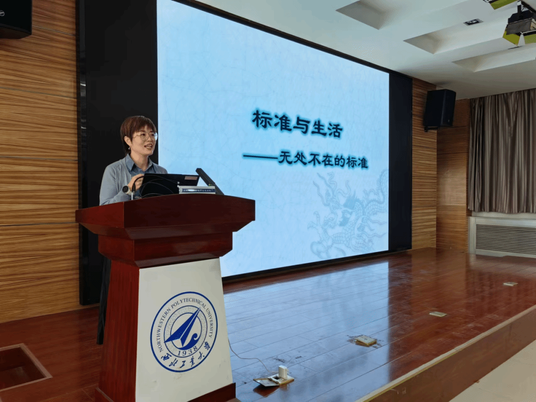 首先由陕西省标准化研究院高级工程师何晓芳,为师生作了一场深入浅出的《标准与生活—无处不在的标准》的基础知识讲座,详细介绍了世界标准日、国际标准化组织的来源、标准的分类、标准的实施和执行以及如何编制合格的标准。讲座结合生活中的标准化事例,内容通俗易懂,引发学生探求标准化知识的浓厚兴趣。