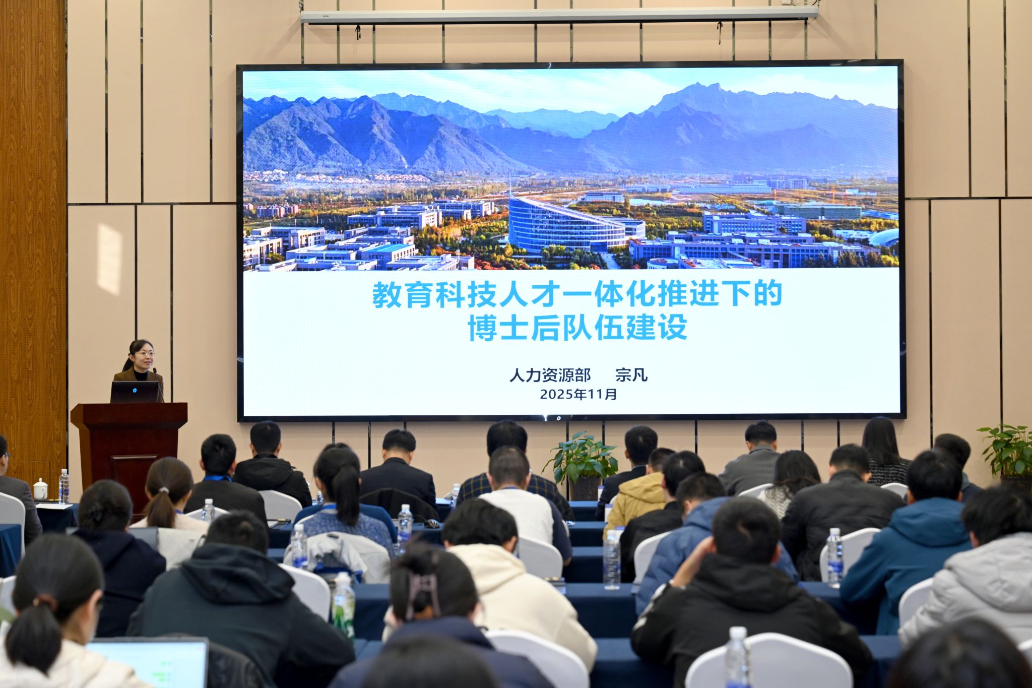 宗凡做博士后引育政策解读。她围绕“教育科技人才一体化推进下的博士后队伍建设”这一主题,用详实的数据、生动的案例,结合学校博士后工作的实际需求,聚焦博士后引进支持、培养机制、项目申报等方面,系统梳理了学校博士后引育的最新政策导向、支持举措,内容极具针对性和指导性。