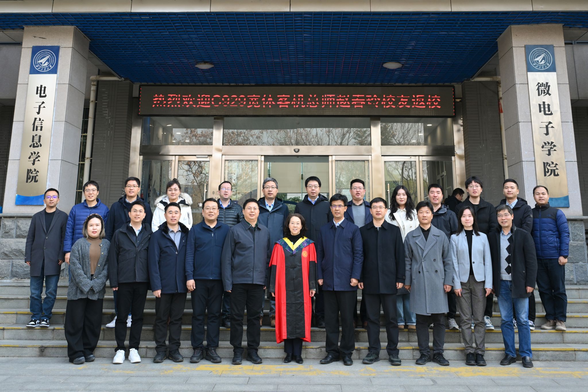 仪式最后,张富利在总结讲话中再次感谢赵春玲对母校的深情厚谊与大力支持。希望其充分发挥自身优势,将前沿的科研理念和丰富的工程实践经验融入到人才培养中,助力学校培育更多兼具理论深度与实践能力的信息领域拔尖创新人才。期待双方携手共进,共同推动合作落地见效,更期待C929宽体客机早日腾飞!
