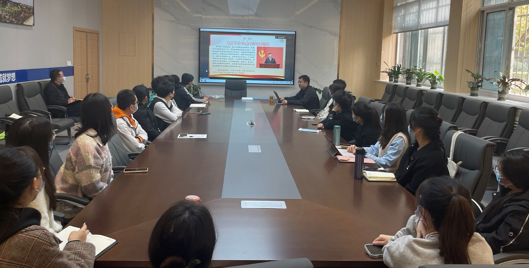 2022年11月4日中午,hg8868皇冠官方登录平台党员发展对象培训班第二次党课教学在学院楼159会议室开展。本次课程由hg8868皇冠官方登录平台党委书记侯俊为学院2022年秋季所有党员发展对象讲授主题为“不负重托 踔厉奋进 争做新时代可堪大用能担重任的栋梁之才”的党课。线上线下共有65名党员发展对象参与了课程的学习。