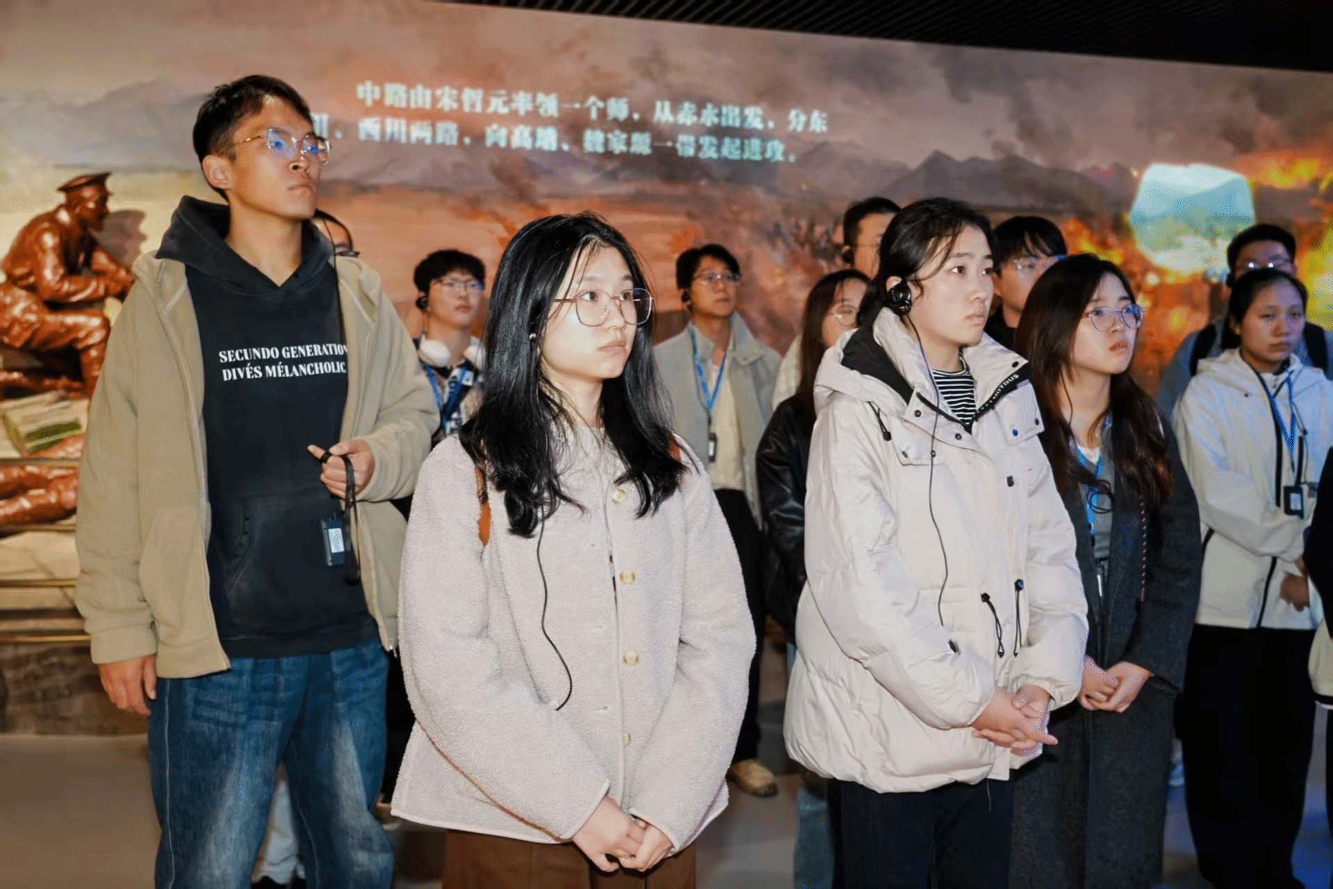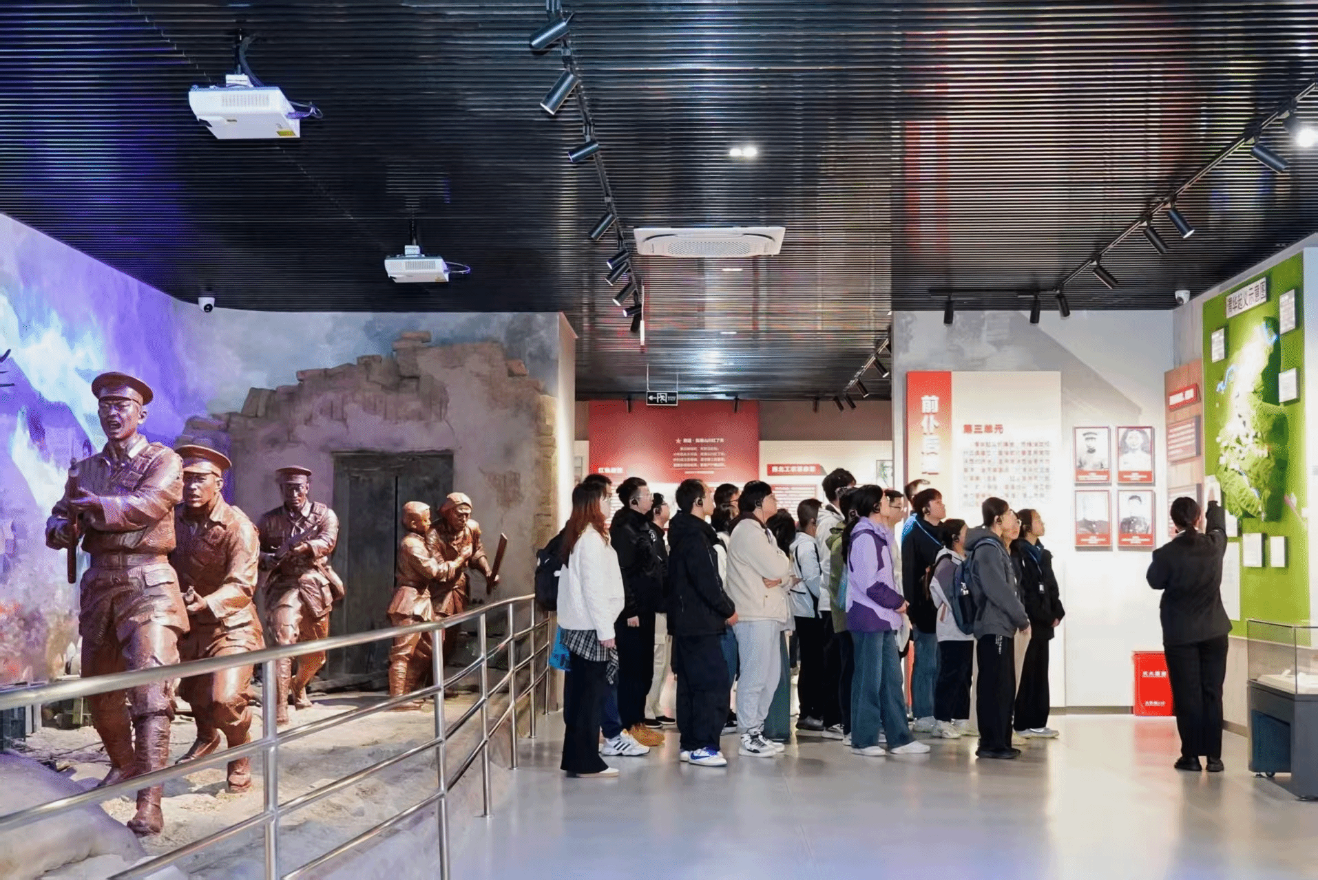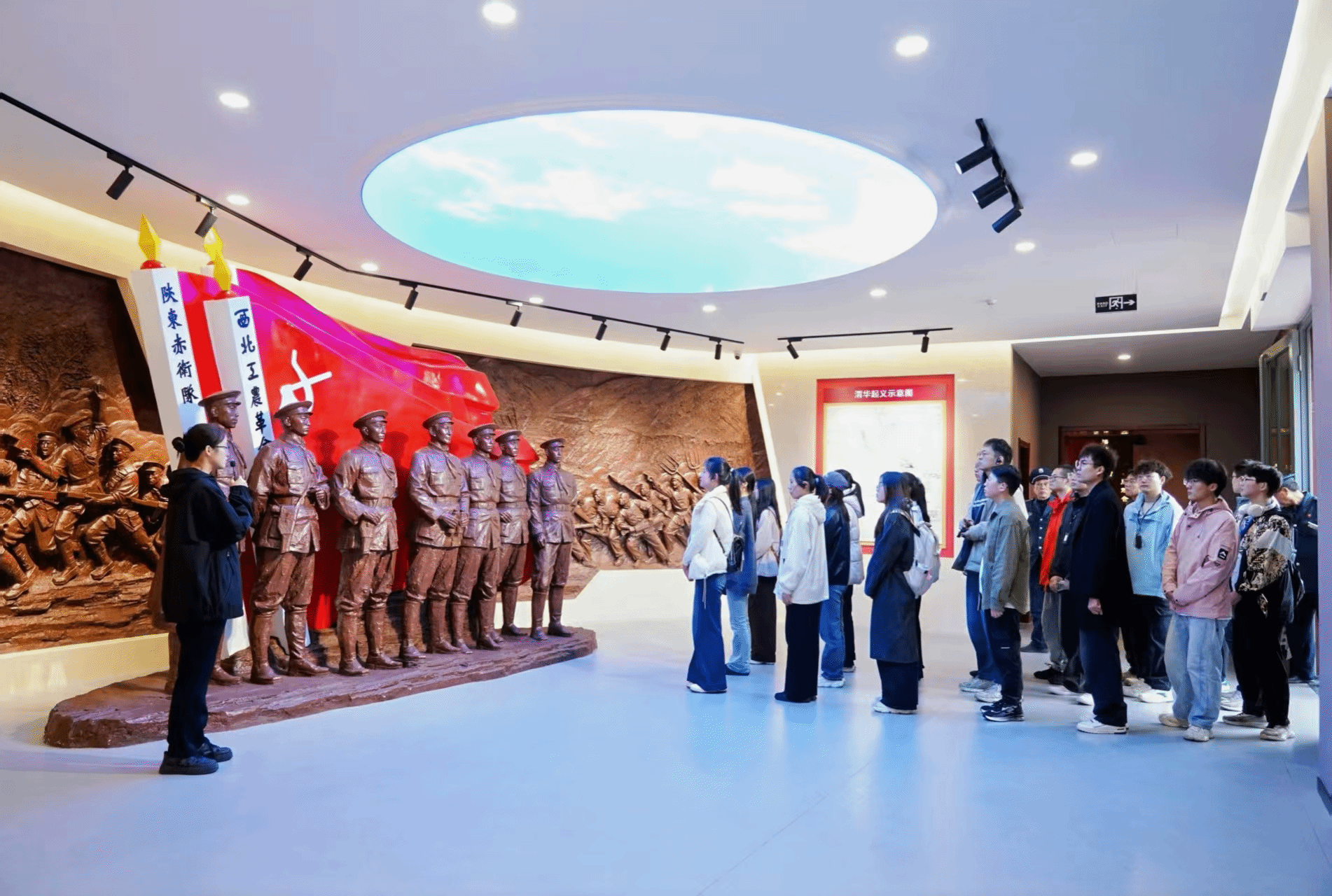 走进渭华起义陈列大厅,四部分展陈清晰勾勒出起义脉络:从大革命失败后党团组织孕育革命火种,到农民运动中苏维埃政权建立与起义爆发,再到渭华起义三大战斗中英烈的不屈抗争,最后通过烈士名录展现了渭华烈士们“坚定信仰、不怕牺牲”的伟大革命精神。一幅幅历史照片、一件件珍贵文物,让师生仿佛置身于1928年的烽火岁月,深刻感受到革命斗争的艰苦卓绝。
